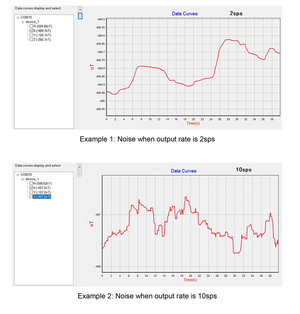 Output Rate (sps) | Noise (nT) (p-p values within 10s) |